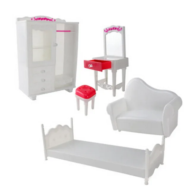 Free Shipping 5 Pcs Kawaii Cute Doll House Furniture Accessories Kit Wardrobe Dresser Chair Sofa Bed for Barbie D are attractive to buyers from around the world