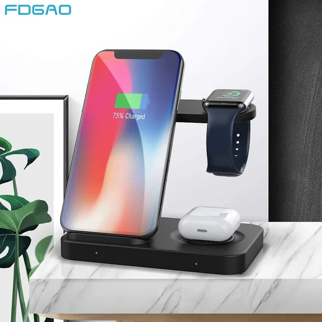 FDGAO Qi 10W Wireless Charger Stand For AirPods Apple Watch Series 3 in 1 Fast Charging Dock Station For iPhone 11 Pro XS MAX XR